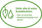 Transparent eller intensiv overfladebehandling, der kombinerer alle fordelene ved olie og voks i et unikt produkt. Osmo Indfarvningsvoks er vand- og smudsafvisende, meget slidstærkt. Sammenlignet med standard overfladebehandlinger giver de naturlige vegetabilske olier og voks en jævn farve og en behagelig overflade. Let at påføre, ingen primer nødvendig. Mikroporøs, revner ikke, flager ikke. Tåler vin, øl, sodavand, kaffe, te, frugtjuice, mælk og vand iflg. DIN 68861-1A (tysk industristandard). Uskadelig for mennesker, dyr og planter i tør tilstand i henhold til DIN 53160 og godkendt til børnelegetøj i henhold til EN 71.3.